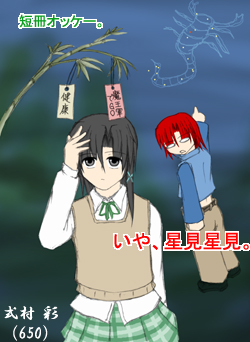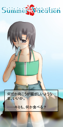 背後の人はかなり余裕無くテンパり通しでしたが、何とかなったので良し! そんな感じで、今回は ・星見祭 (CNo.66 『もっと絵が上手くなりたい』コミュ主催) ・Summer Vacation (CNo.271 『自分レンタル宣言』コミュ主催) の2つにイベント参加してました。 参加といっても絵を描いて提出っ!というだけですが。 …うん、キャラチャットとか年単位振りに行きたいんだけど眠いんです凄く…っ! いつ寝落ちるかわっかんないですやーい(ノ▽T) 落ち着いたら突撃してみるべか?なところです、はい。 (02:30くらい追記) キャラ茶へ参加して参りました、23時過ぎから入り3時間少々。 不慣れで申し訳なかったですが楽しかったとです、ありがとうございましたっ(ノ▽T) でもランダムな出来事ながら、 ・暑い…と言いながら小屋に近付き、かき氷一杯 →オレンジ味 ・途中にかき氷おかわり →ブルーハワイ味 ・最後に一杯、と注文したら →マウンテン(超特大のかき氷) どんな死亡フラグの踏み方してるんですか、思わず飲んでた水でPLが咽ましたッ。 さてさて、夜の部の方はどうしましょうかねえ… 普段の制服でいくか、水着のままいくか、浴衣でも拵えるか。 レッツ煩悩チョイスだぞ、と。 しかしあれですね。 提出したり完成させた後に限って「描き直したい」とか「これは塗り直したい」とか出ませんか? 絵日記くらいのやっつけ具合になると清々しく放置出来ますけど。 今回の日記と堕島の色々はまた後日にでも。 ← 星見祭 / Summer Vacation →